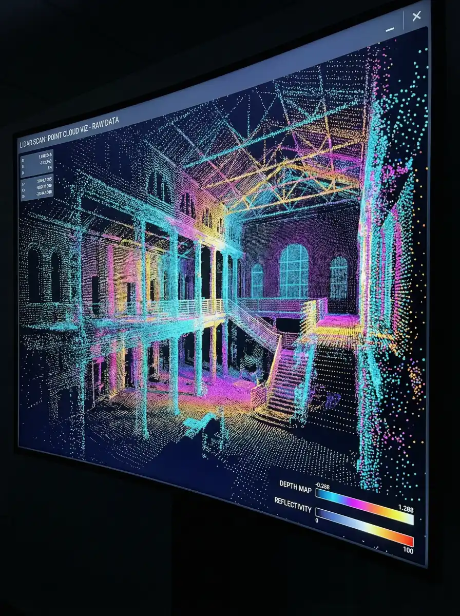 Świadczymy usługi skanowania laserowego LiDAR, dostarczając kompleksowe dane przestrzenne niezbędne do opracowania modeli BIM, dokumentacji projektowej oraz analiz inżynierskich, z zachowaniem milimetrowej dokładności pomiarowej.